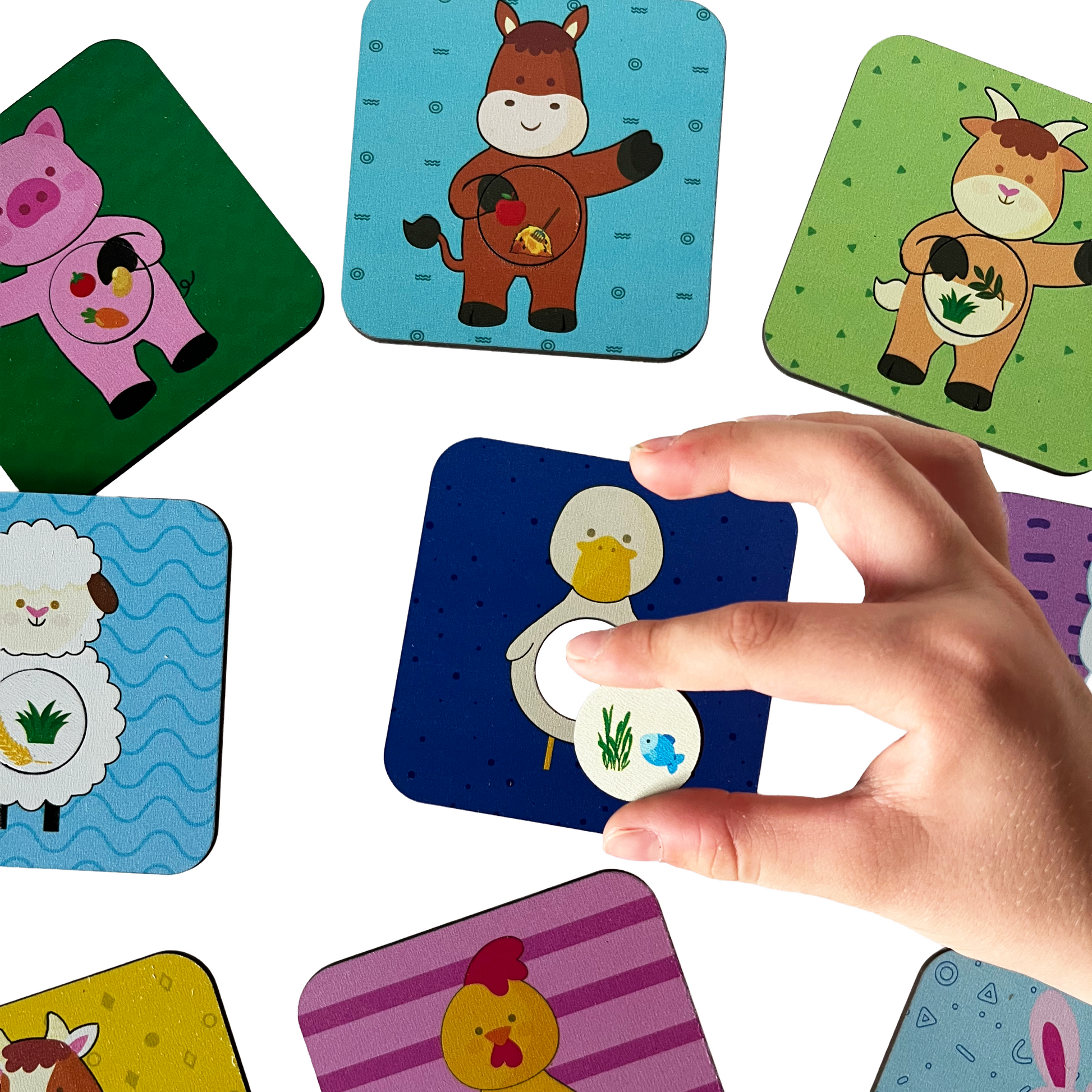 Pomoću ove zabavne i edukativne slagalice, vaše dete će na jednostavan i zanimljiv način naučiti koje životinje jedu koju hranu, dok istovremeno razvija logiku, pažnju i sposobnost povezivanja.