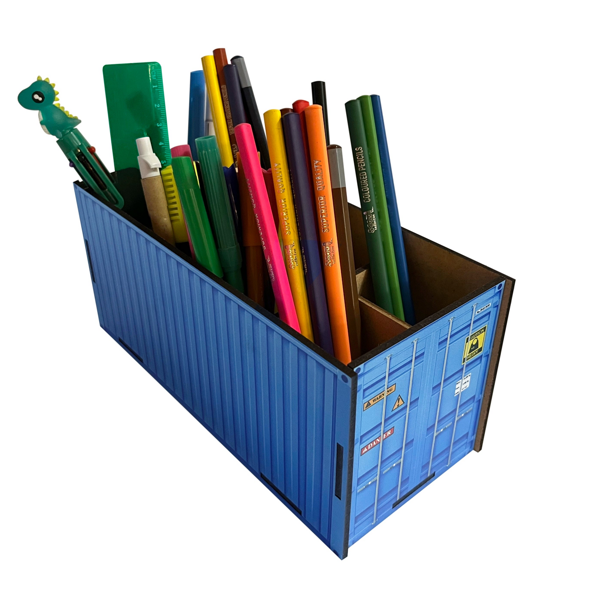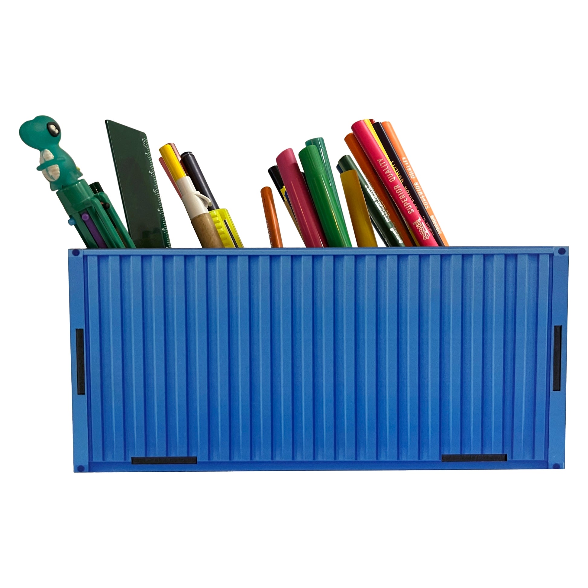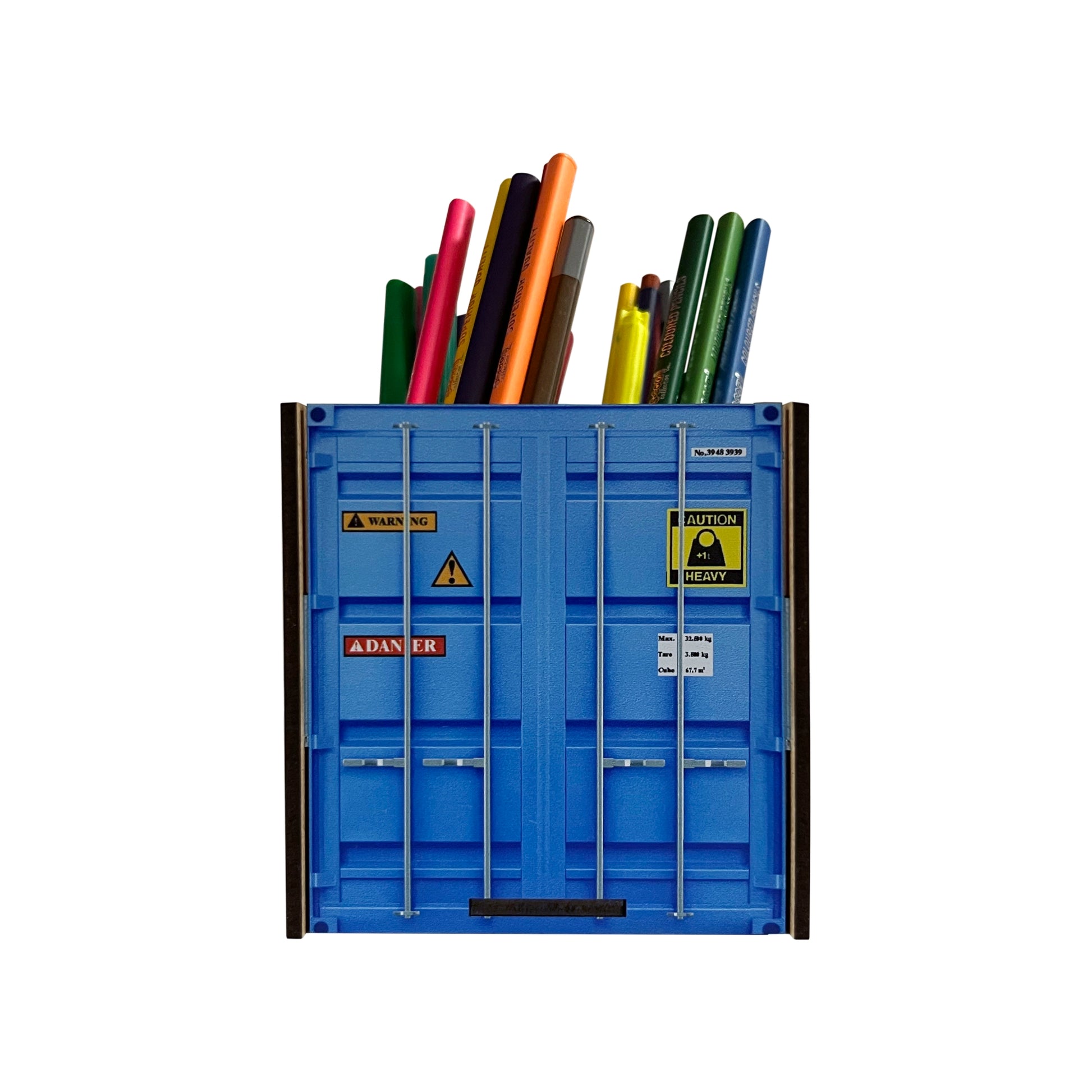 Drveni organizator za olovke inspirisan oblikom pravog kontejnera - funkcionalan, upečatljiv i kvalitetno izradjen. Napravljen je ručno u Srbiji, od drveta i obojen netoksičnim bojama, bezbednim za svakodnevnu upotrebu. Idealno rešenje za uredan sto, radionicu ili dečiju sobu.