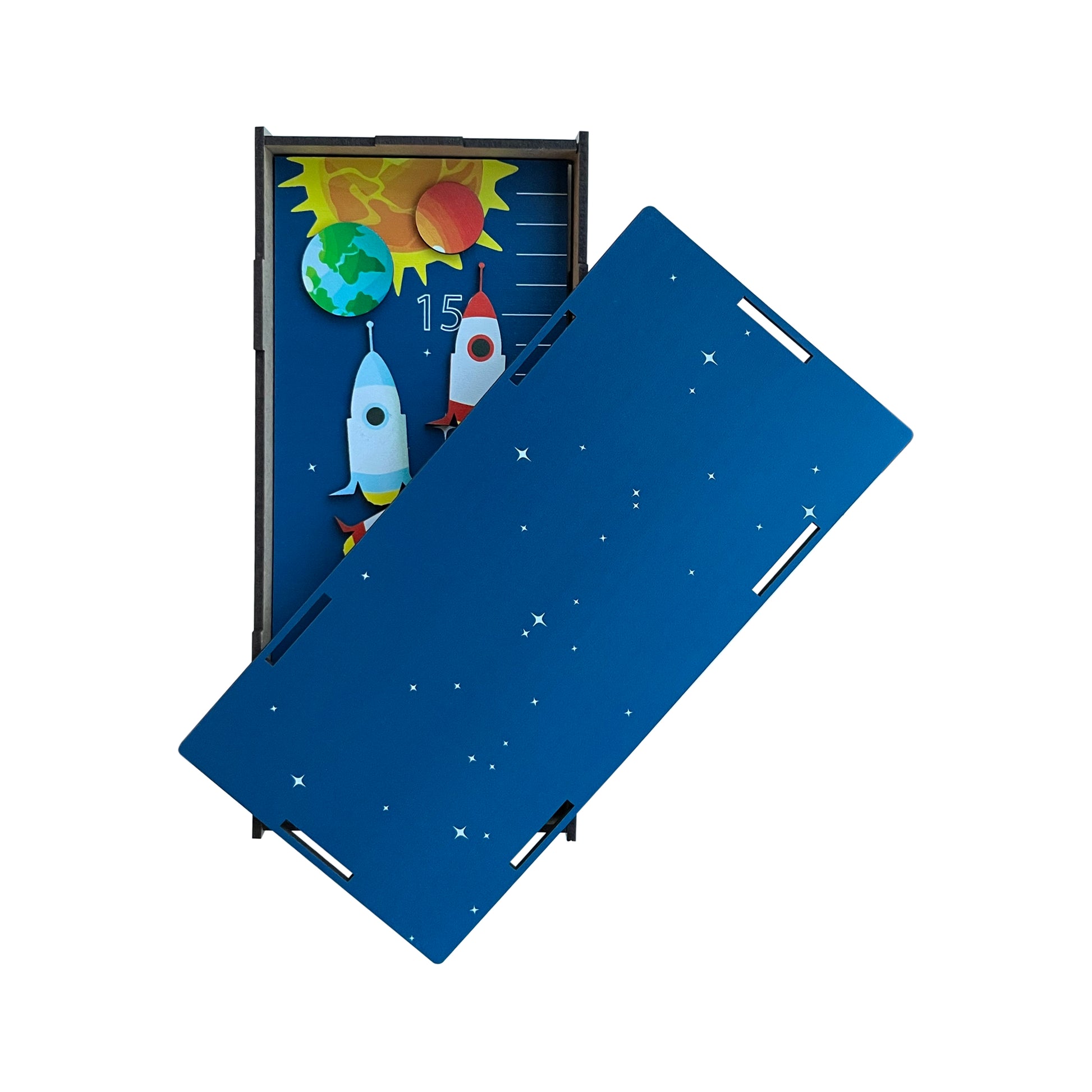 Uz ovaj visinometar, svako dete može pratiti svoj rast dok istražuje tajne svemira! Planete, zvezde i beskonačni uviverzum postaju deo dečije svakodenvnice, a posebna raketa koja označava visinu dodaje dozu zabave i uzbudjenja. Svaki centimetar je novi korak bliže zvezdama! Idelan je poklon za male istraživače i ljubitelje svemira.